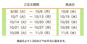 ご注文期間中にご入金が完了しているご注文を、該当する発送日に発送します。